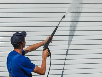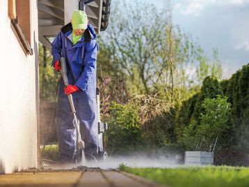 Thoroughly wash and rinse all exterior surface utilizing the soft wash process in order to remove all organic material from the surface causing discoloration and mold.